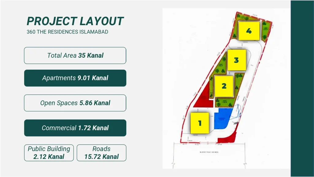 Situated in a strategic location with good connectivity to major Islamabad landmarks, 360 The Residences combines urban convenience with natural surroundings. It emphasizes premium living standards, making it both a lifestyle choice and an investment opportunity